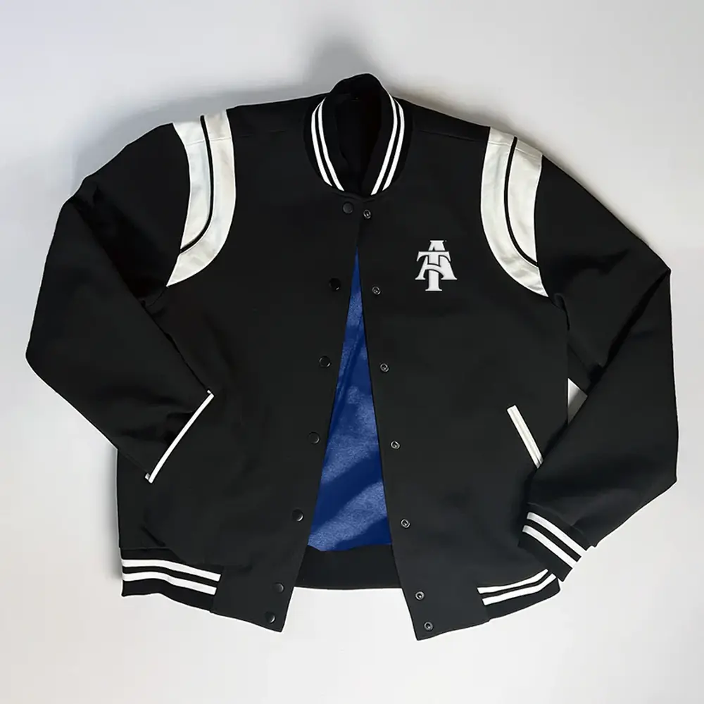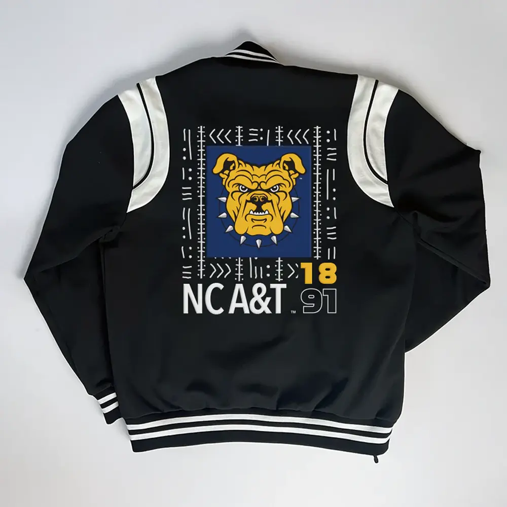 This varsity jacket is not just for style The material used when constructing this varsity is resilient and comfortable. The black wool is greatly tender and durable; you will find this varsity enjoyable and long-serving. There is extra lining inside to give extra warmth and is very easy to wear because of the snap button. Whether you are enjoying the game or just enjoying your daily attire, the NC A&T Aggie Mudcloth Varsity Jacket is a perfect fit for all occasions, sporty and chic, and college pride all in one stylish element.