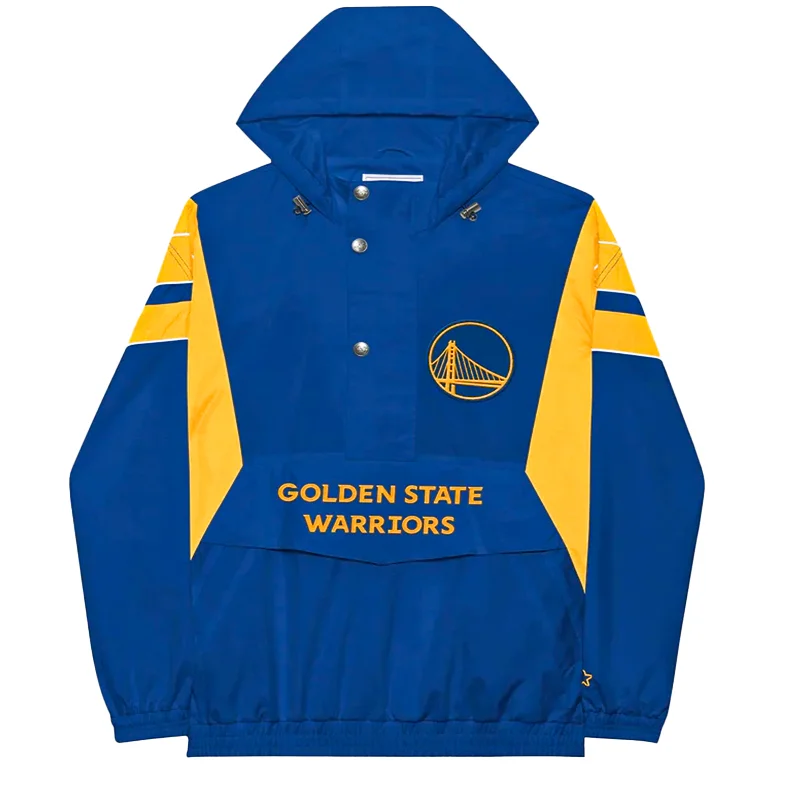 Get ready to show off your Golden State Warriors spirit with our Golden State Warriors Home Team Jacket! Constructed from top-notch polyester, this hoodie is built to last while keeping you comfy, whether you’re at a game or just hanging out. The vibrant royal blue color really pops and shows off your team pride, plus the hood and half-zip design give it that sporty vibe. Inside, the soft polyester lining feels great against your skin, making it ideal for all-day wear. The elastic cuffs and hem help keep the chill out, ensuring you stay warm. There’s even a handy flapped pocket for your small essentials while you’re on the go. With the iconic team logo featured on both the front and back, this Starter Golden State Warriors Home Team Jacket is a fantastic way to flaunt your loyalty. The quality stitching means it’s made to last, so it’ll be a staple in your sports wardrobe for years to come. Whether you’re cheering from the stands or out and about, this hoodie is a must-have for any true fan.