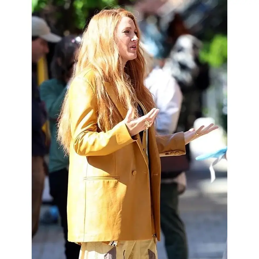 Blake Lively Lily Bloom It Ends With Us 2024 Mustard Leather Coat