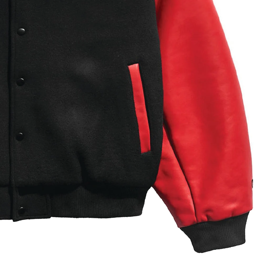 Black & Red Raw Is War Retro Wool With Leather Letterman Jacket