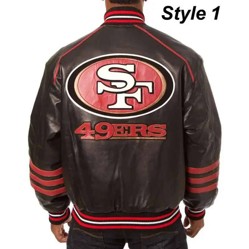 The San Francisco 49ers Varsity Leather Jacket is a must-have for any true 49ers fan. Made from high-quality leather, this jacket offers both style and durability. Its varsity design features classic striped detailing on the sleeves and bold SF 49ers logos, making it perfect for game days, casual outings, or showing off your team pride wherever you go. The premium leather not only provides a sleek and polished look but also ensures comfort and warmth, making it ideal for cooler weather.