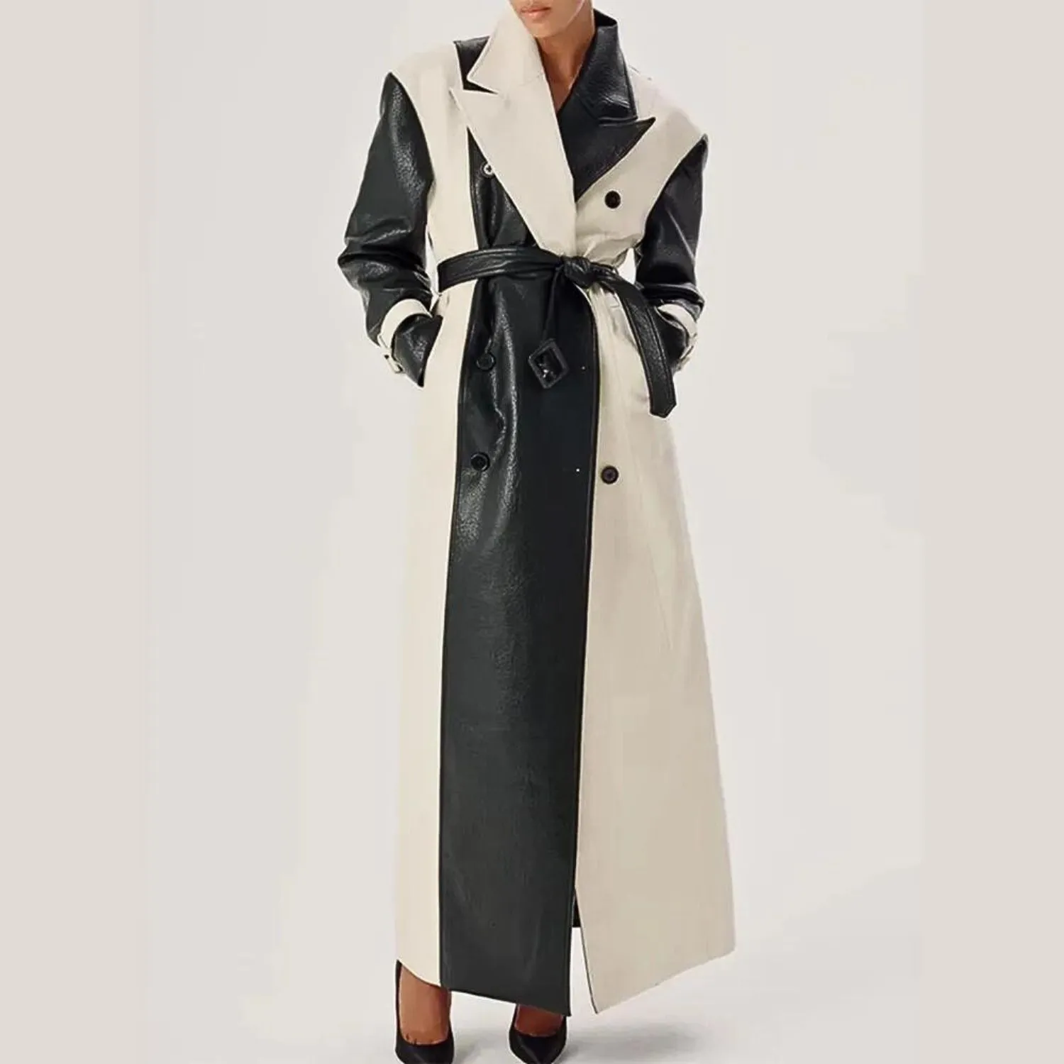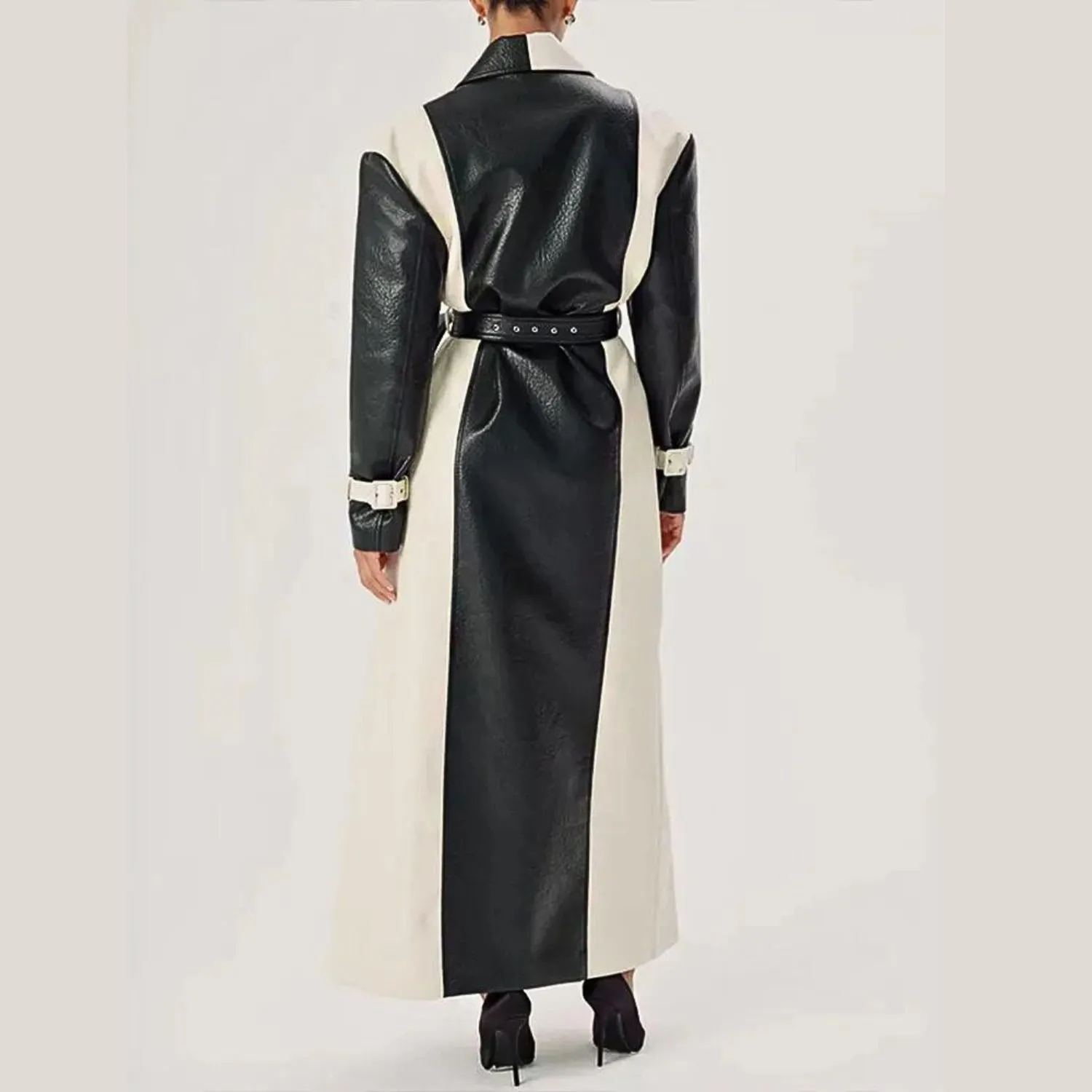 Megan TerryVerified OwnerThe black and white contrast on this leather coat is stunning. The real leather is soft but strong, and I love the buckle belt on the waist.