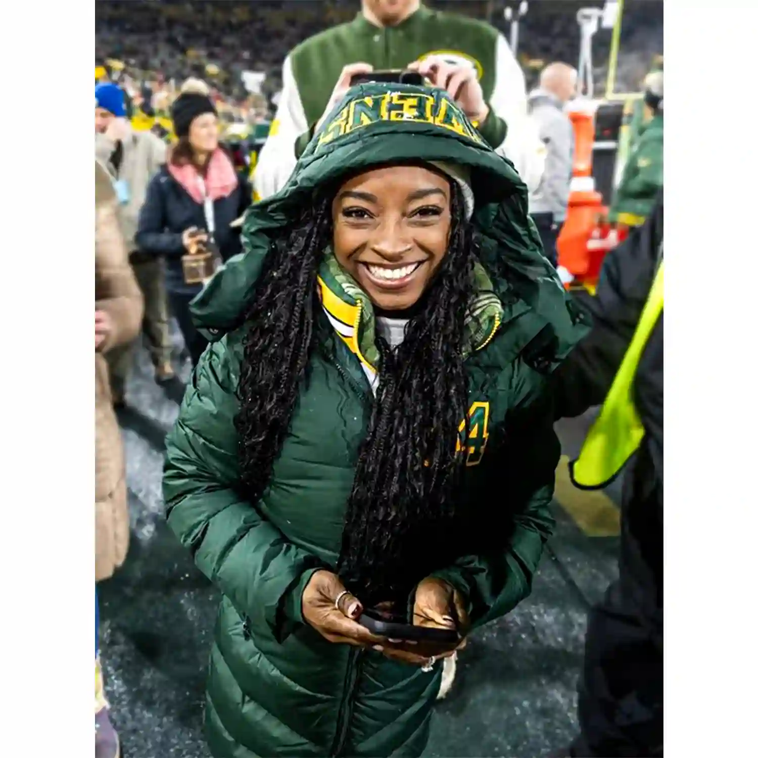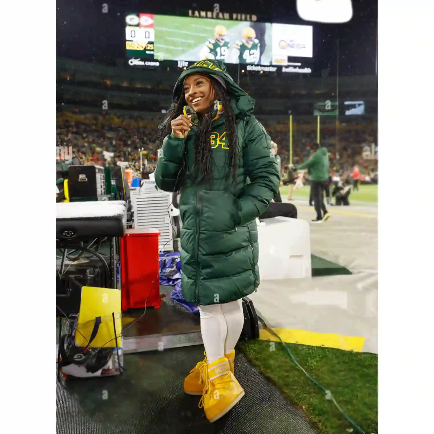 Lambeau Field Packers Game Simone Biles Packers Green Puffer Coat