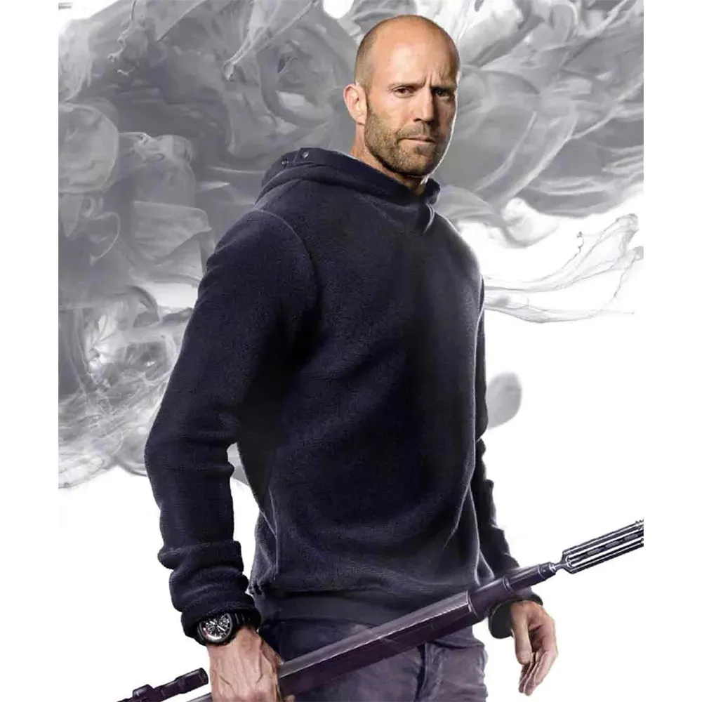 Channel your inner action hero with our The Meg Jason Statham Pullover Hoodie. This is made from premium fleece fabric that does not make you feel heavy but keeps you warm. It has a soft polyester lining, making it the best casual wear. Its bold, sporty look features a hooded collar, with open hem cuffs for a loose fit. The long, fitted sleeves are made to provide a sleek and modern silhouette. Being black in color, it’s versatile, as it can go well with jeans or joggers. A spacious pocket provides more space to hold items or keep your hands warm on cold nights. Our pullover hoodie speaks a language of confidence and adventure, inspired by the daredevil spirit of Jason Statham from The Meg.