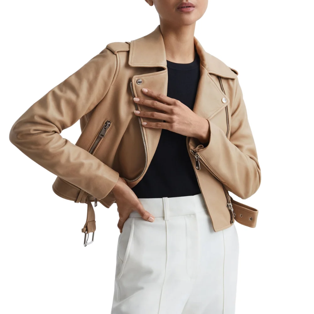 Introducing Our Women’s Real Leather Beige Biker Jacket